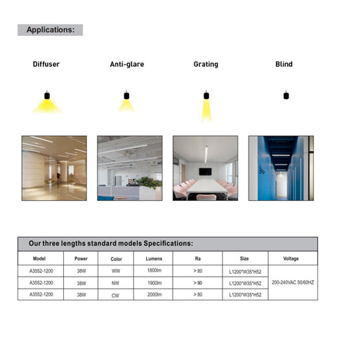Ultra Anti-glare LED Linea Track Light AC200-240V 38W